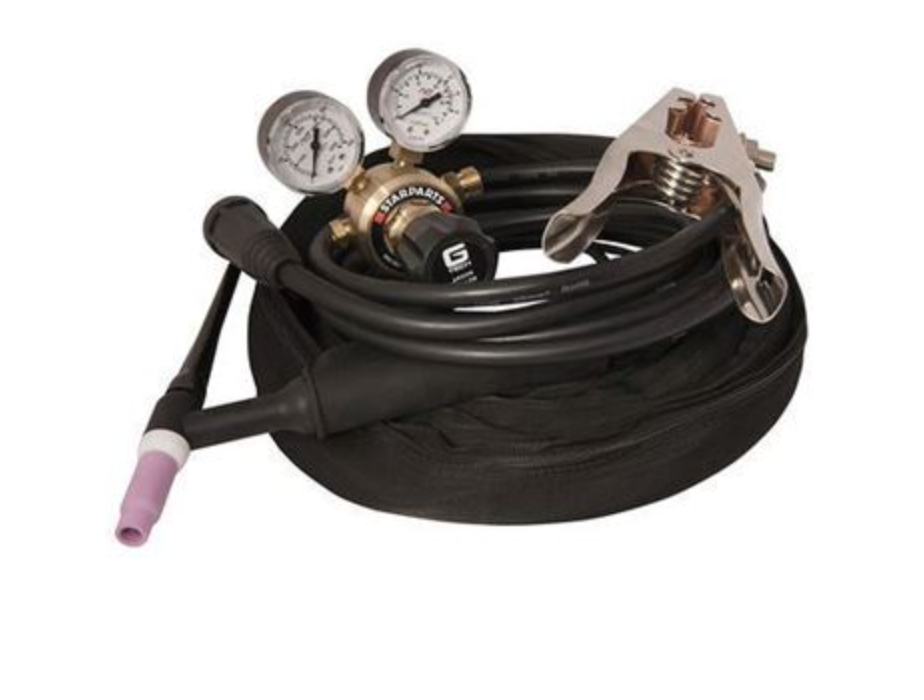 Jasic TIG 200 230V DC Inverter Package includes power source, TIG torch and adaptor, gas regulator, work return lead & clamp